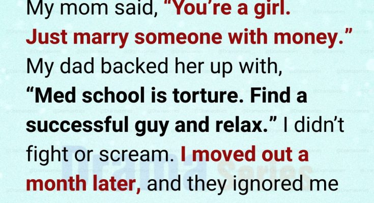“Why would you do that? You’re a girl. Just marry someone with money,” my mom said. My dad nodded. “Med school is torture. Relax and find a successful guy.”
