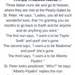 At the Pearly Gates, beneath clouds arranged with the neatness of an art museum, three Italian nuns arrived together after long, faithful lives. St. Peter welcomed them warmly, smiling as…